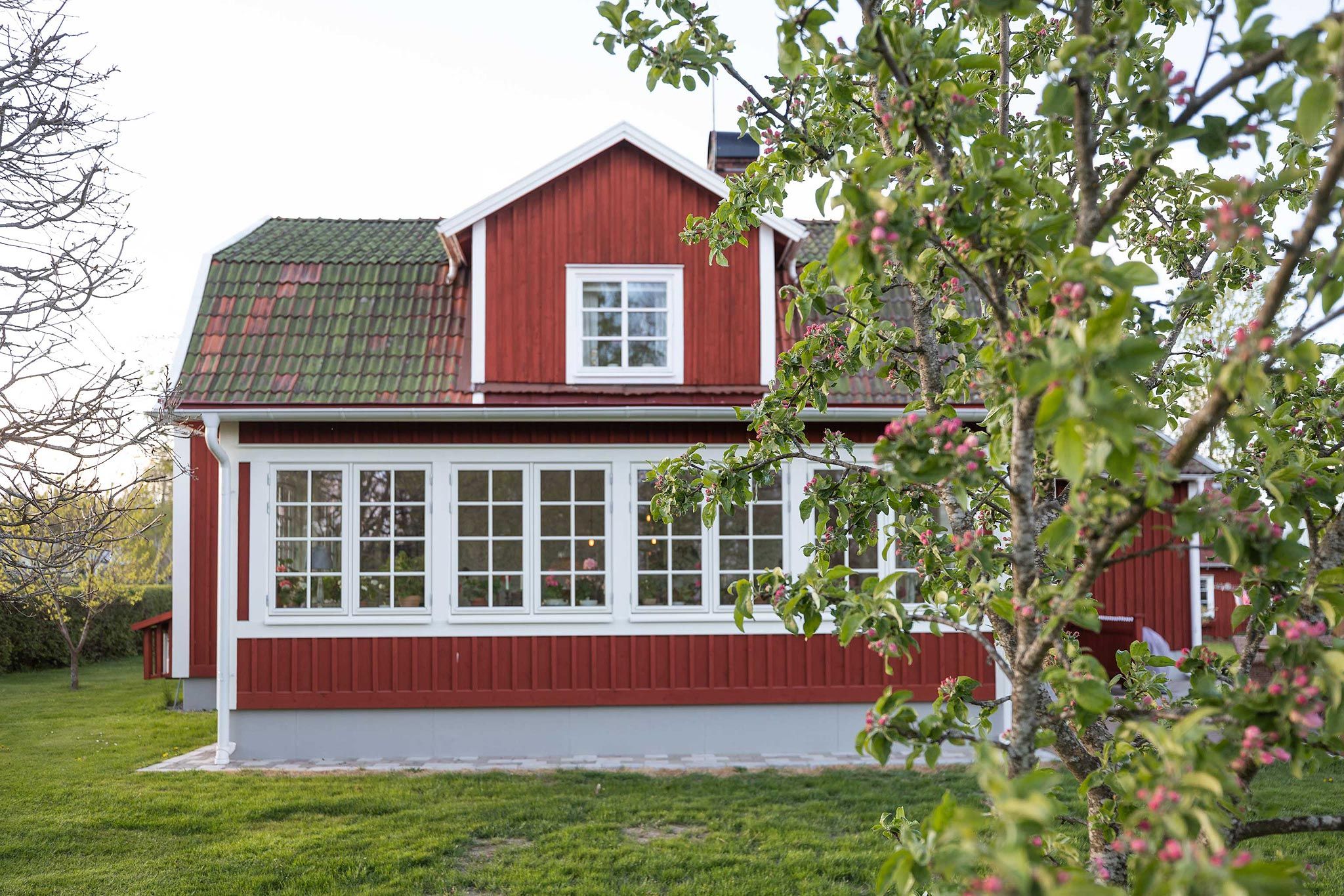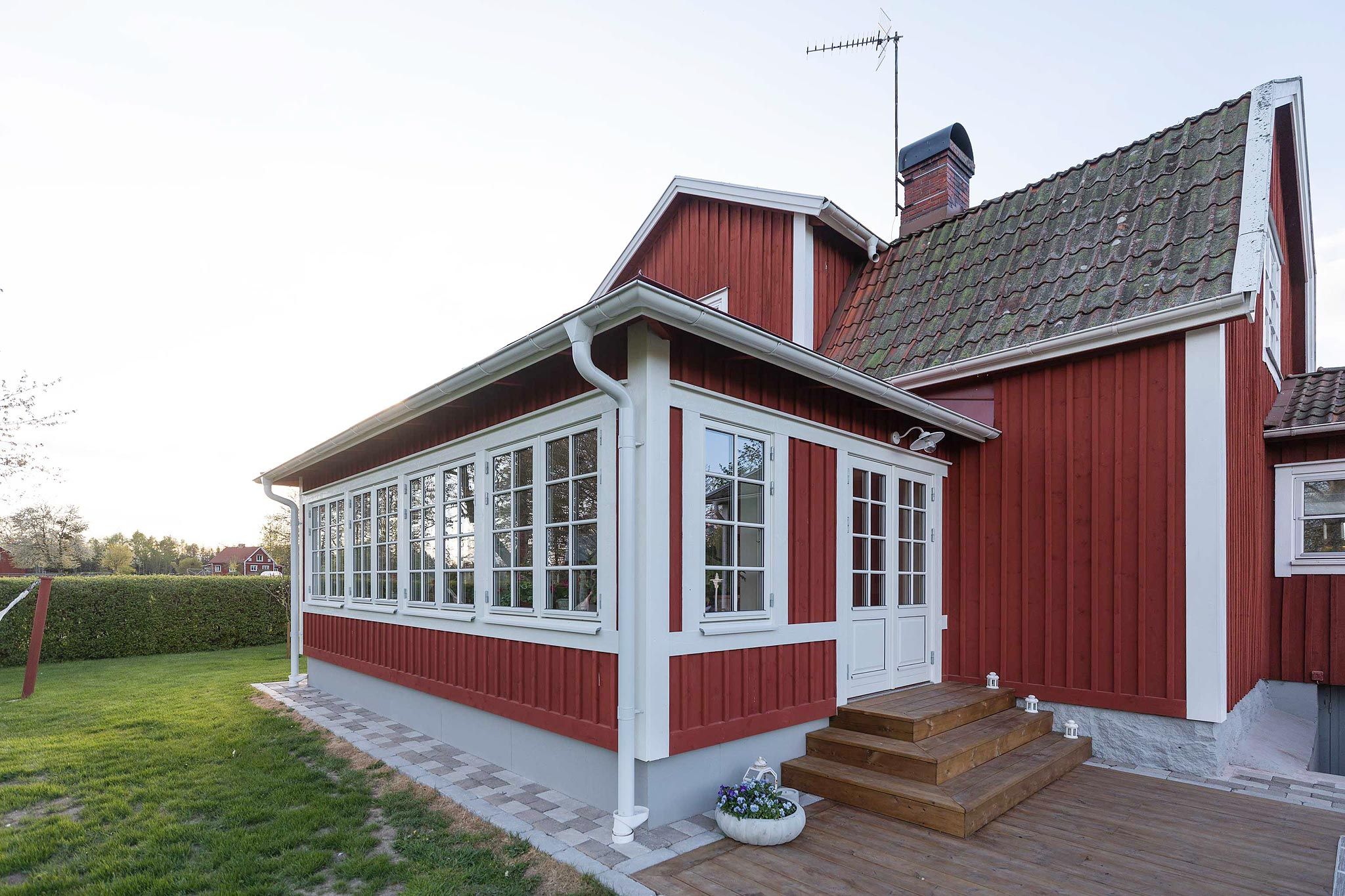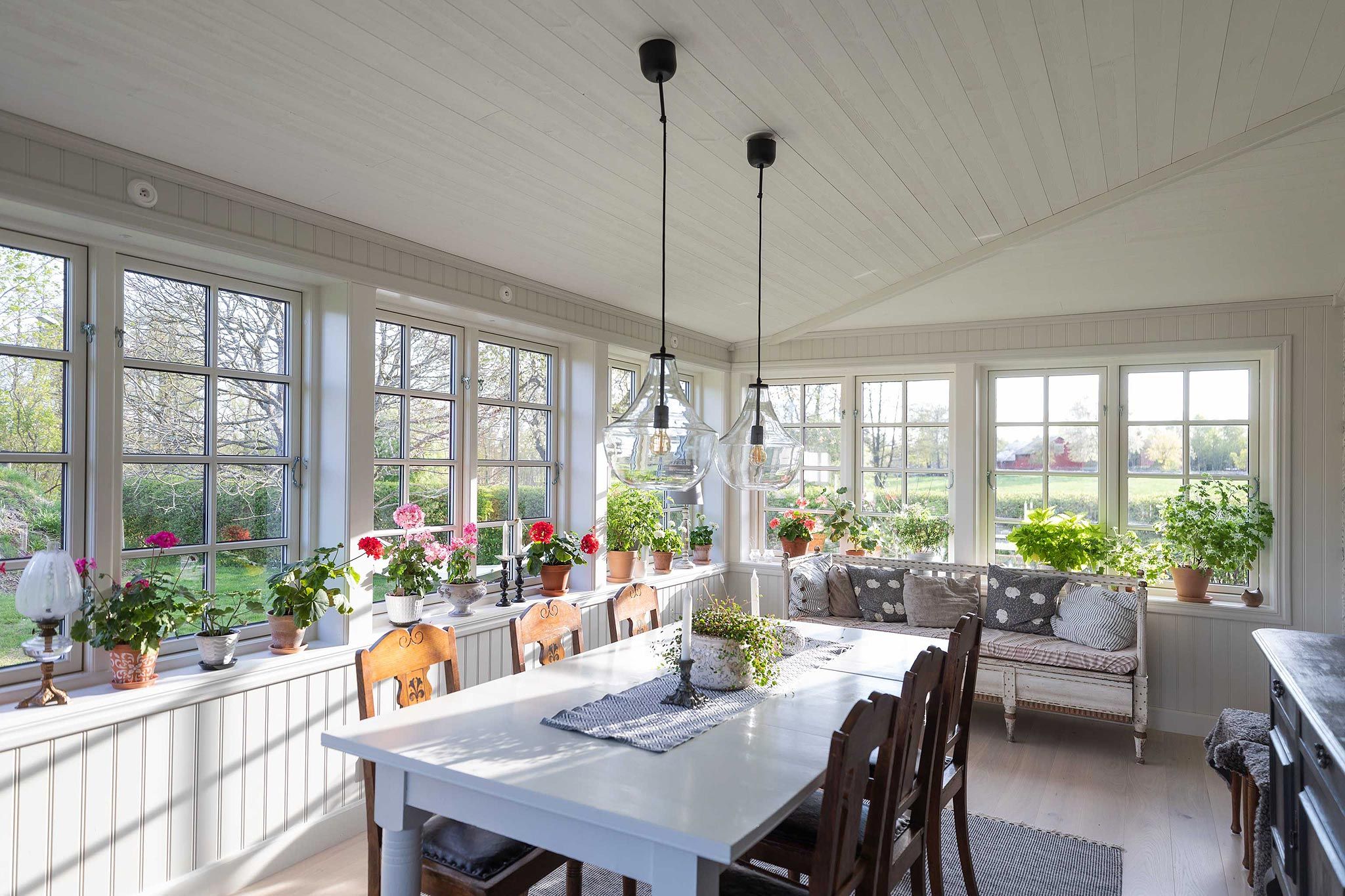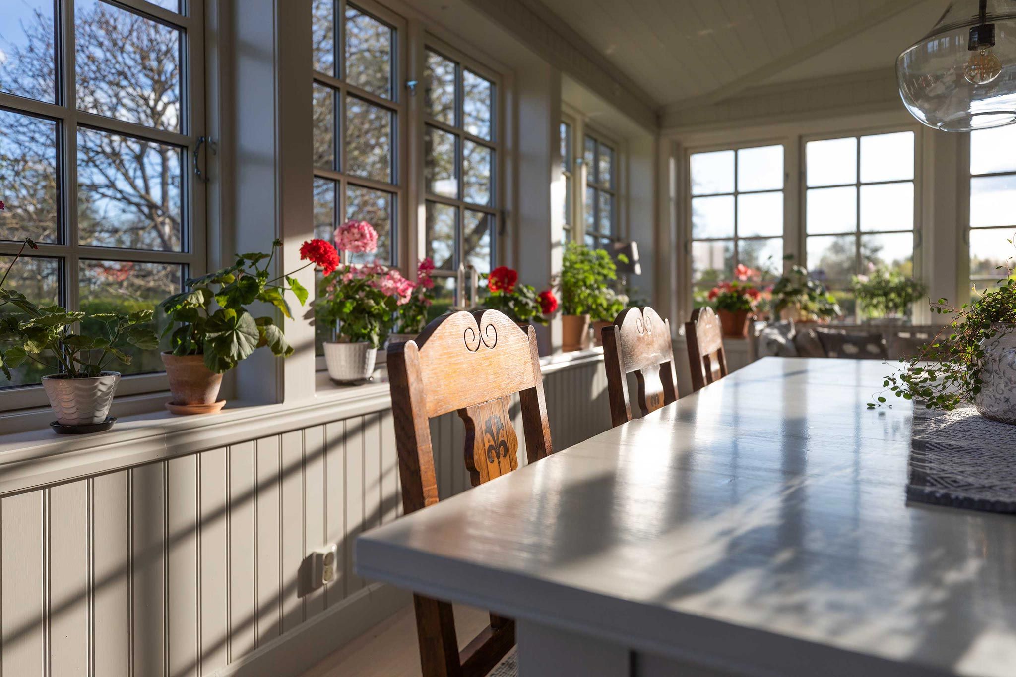 Resultatet blev en glasad tillbyggnad med plats för stor matplats och med utgång till den stora trädgården.