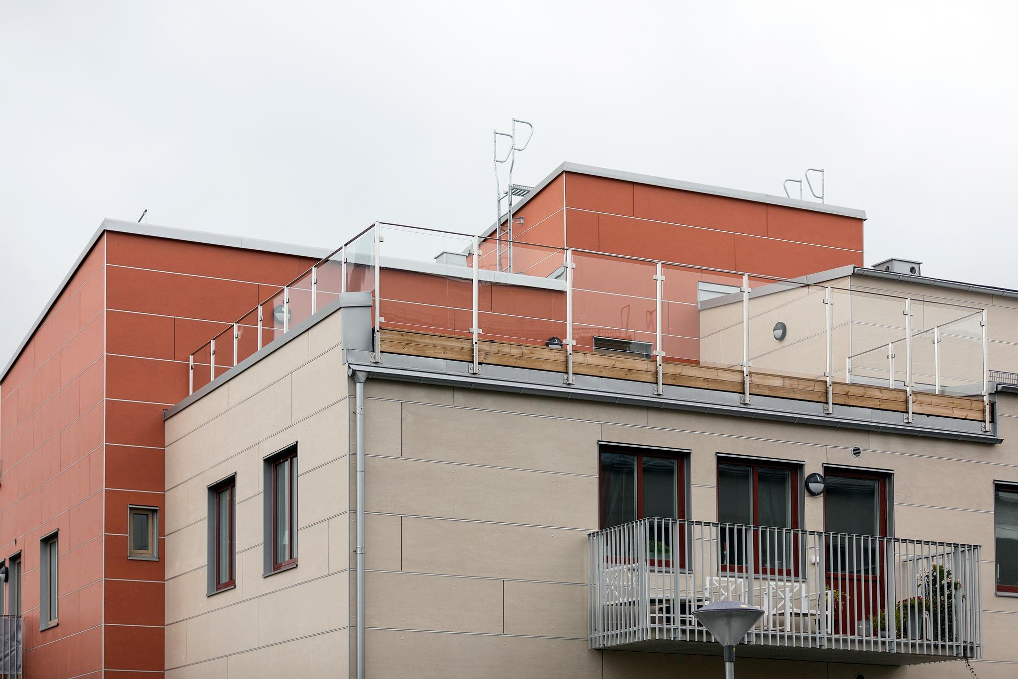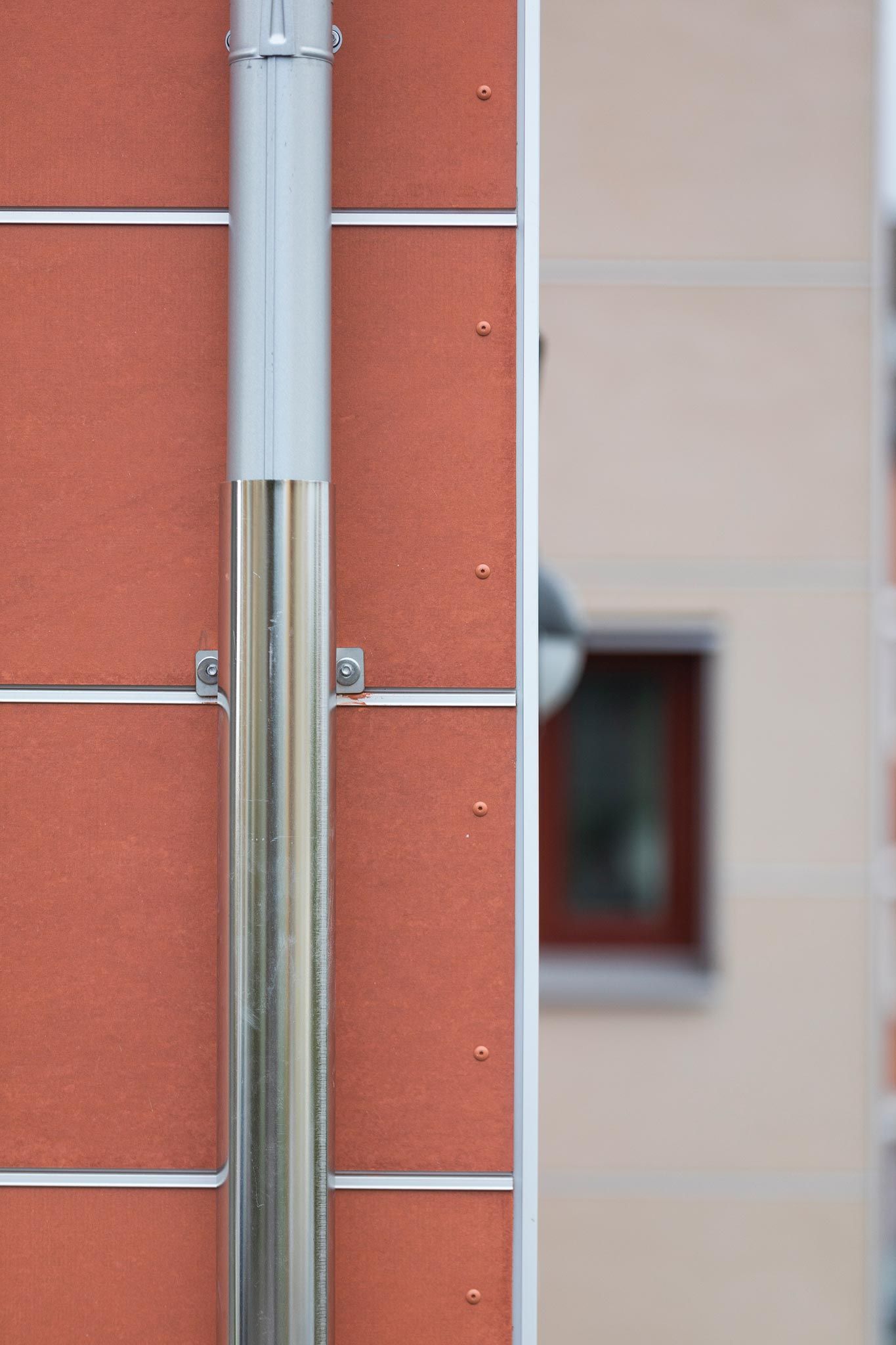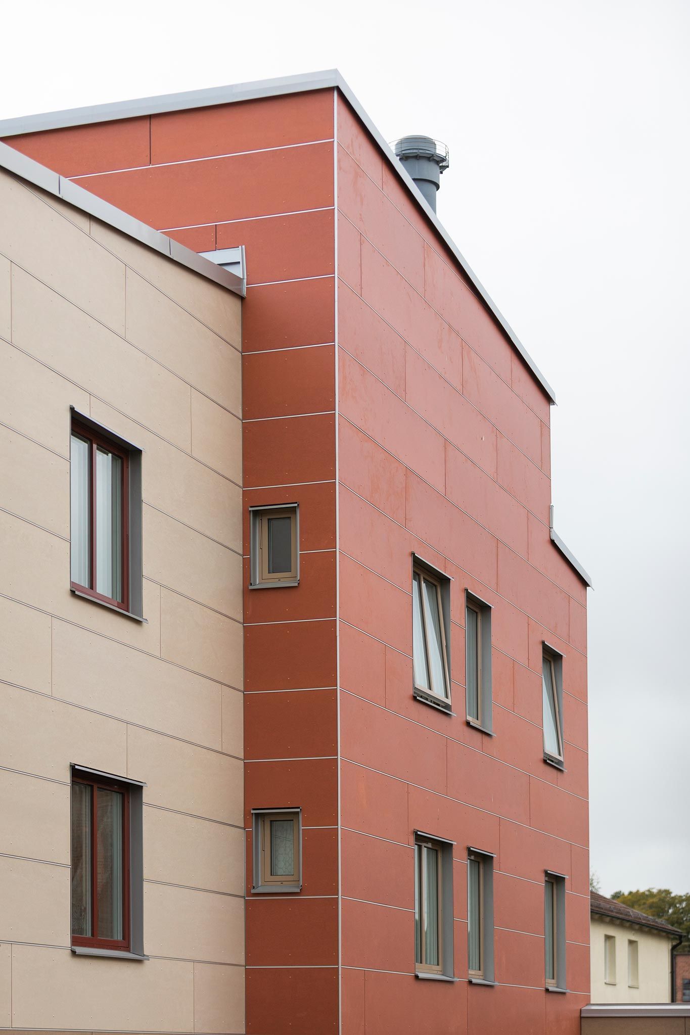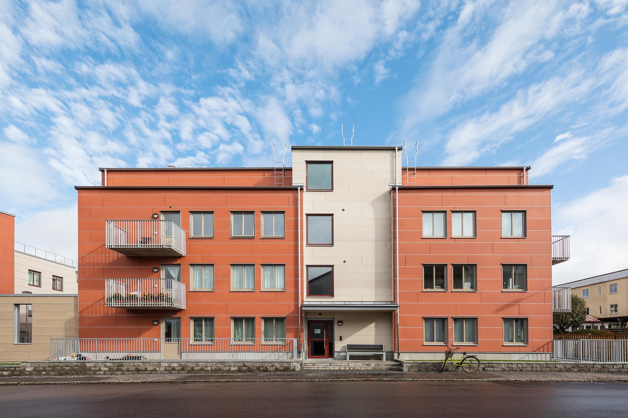 Fasaderna är klädda i tåligt skivmaterial i vackra, milda kulörer som både känns samtida och harmonierar väl med omgivande bebyggelse från olika tidsepoker.