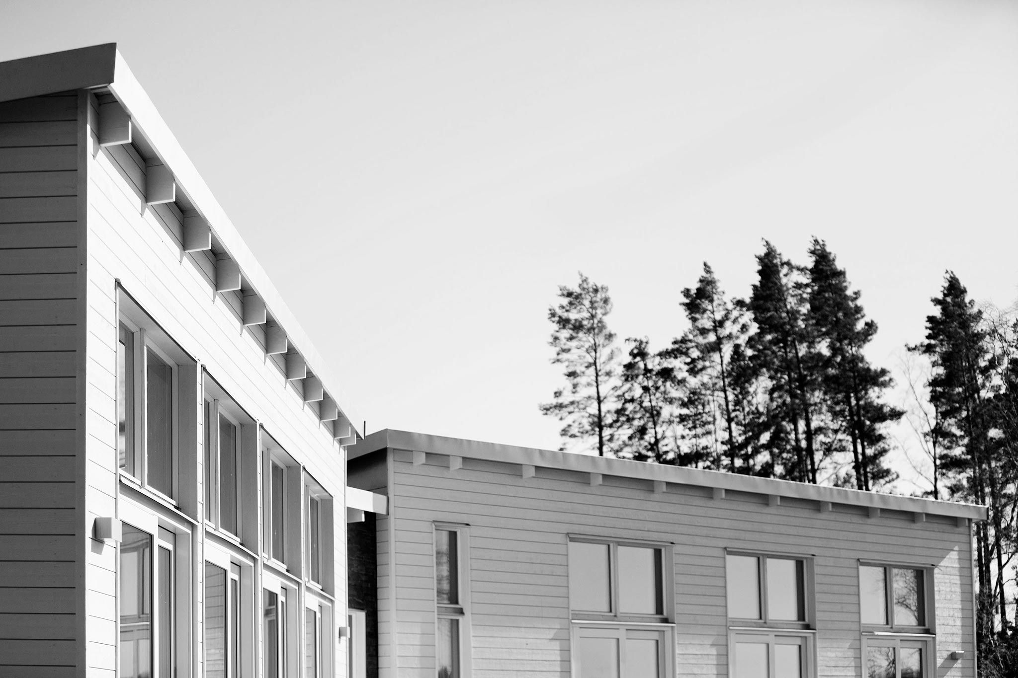 Villa Elofsson är ett enplanshus med en tydlig disposition där de publika umgängesdelarna och sovrumsdelen är tydligt avgränsade genom en vinklad plan där den generösa entrén med sjöutsikt utgör mittpunkten.